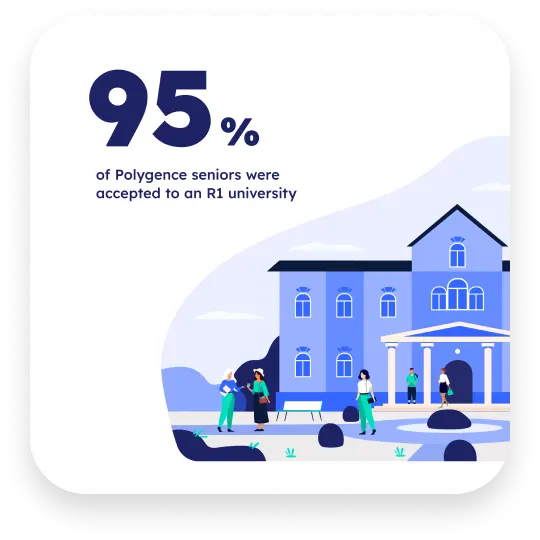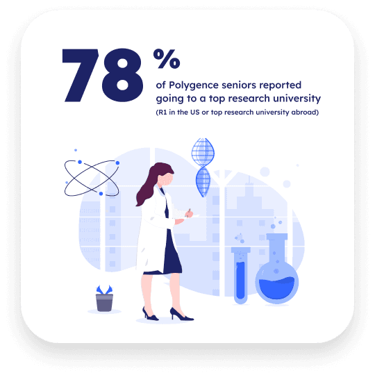 Stand out to college admissions. Polygence students are 4x more likely to get accepted to a Top 25 University.